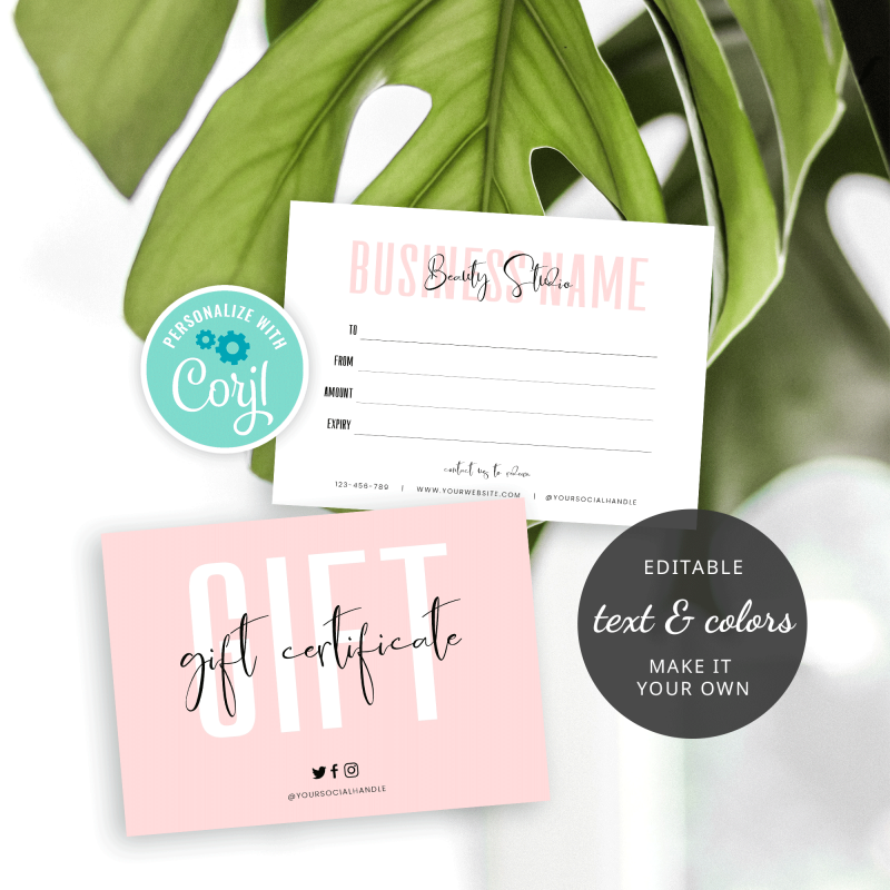 Edit your personalized gift voucher cards for your business online at Corjl.com right after purchasing.