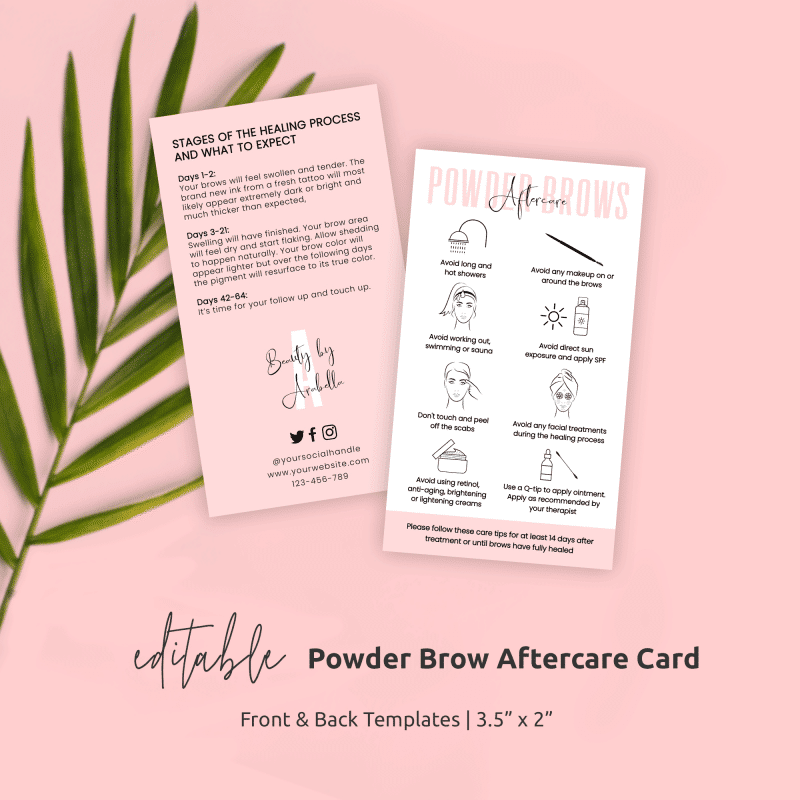 Editable Ombré Powder Brows Aftercare Card Template